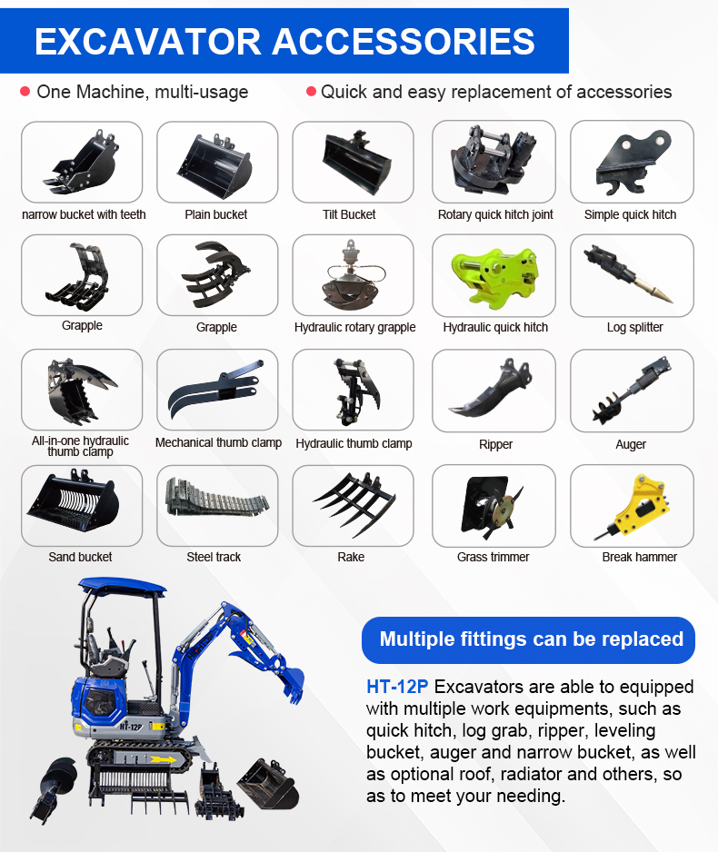 The HT12P Compact Excavator's hydraulic pilot system is equipped with an auto-adjustment function that automatically adjusts the hydraulic pressure according to the operator's input. This reduces operator fatigue over long periods of time and improves work efficiency.
