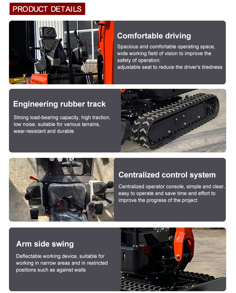 Spacious and comfortable operating space,wide working field of vision to improve the safety of operation;adjustable seat to reduce the driver's tiredness.