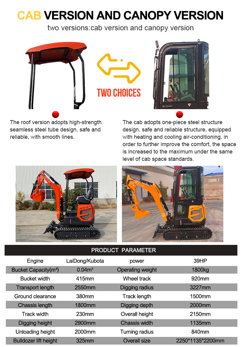 The cab adopts one-piece steel structure design, safe and reliable structure, equipped with heating and cooling air-conditioning, in order to further improve the comfort, the space is increased to the maximum under the same level of cab space standards.