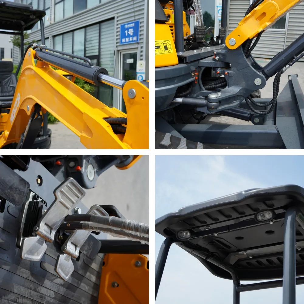 The fully hydraulic pilot operation includes: pilot handles on both sides, bulldozer shovel, walking operation, breaking hammer, and side swing function. When working, after the engine is started, the safety lock must be pulled down first before the entire vehicle can move, which can effectively protect the driver with an effective safety protection function.